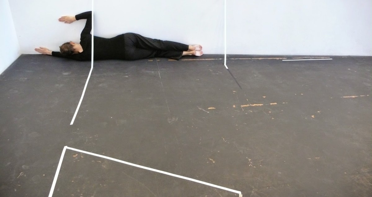Ce projet met en lumière diverses questions liées à la perception de l’espace – d’une part, une structure éphémère en constante évolution ; d’autre part, le passage de structures invisibles à des structures visibles. Une sorte de cartographie imaginaire, rendue tangible par la présence du corps dans l’espace vide (espace d’exposition/studio) et son interaction avec les lignes.