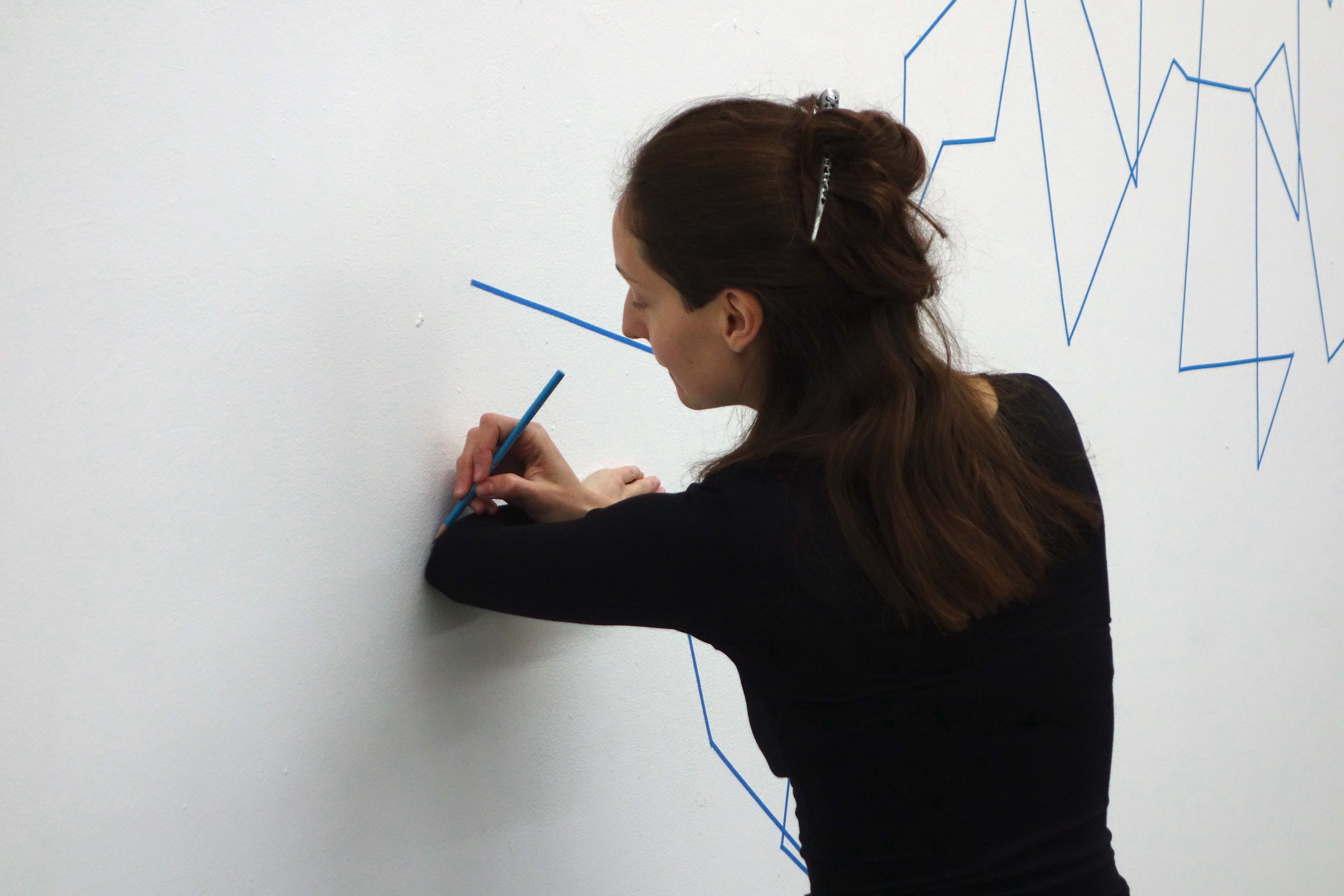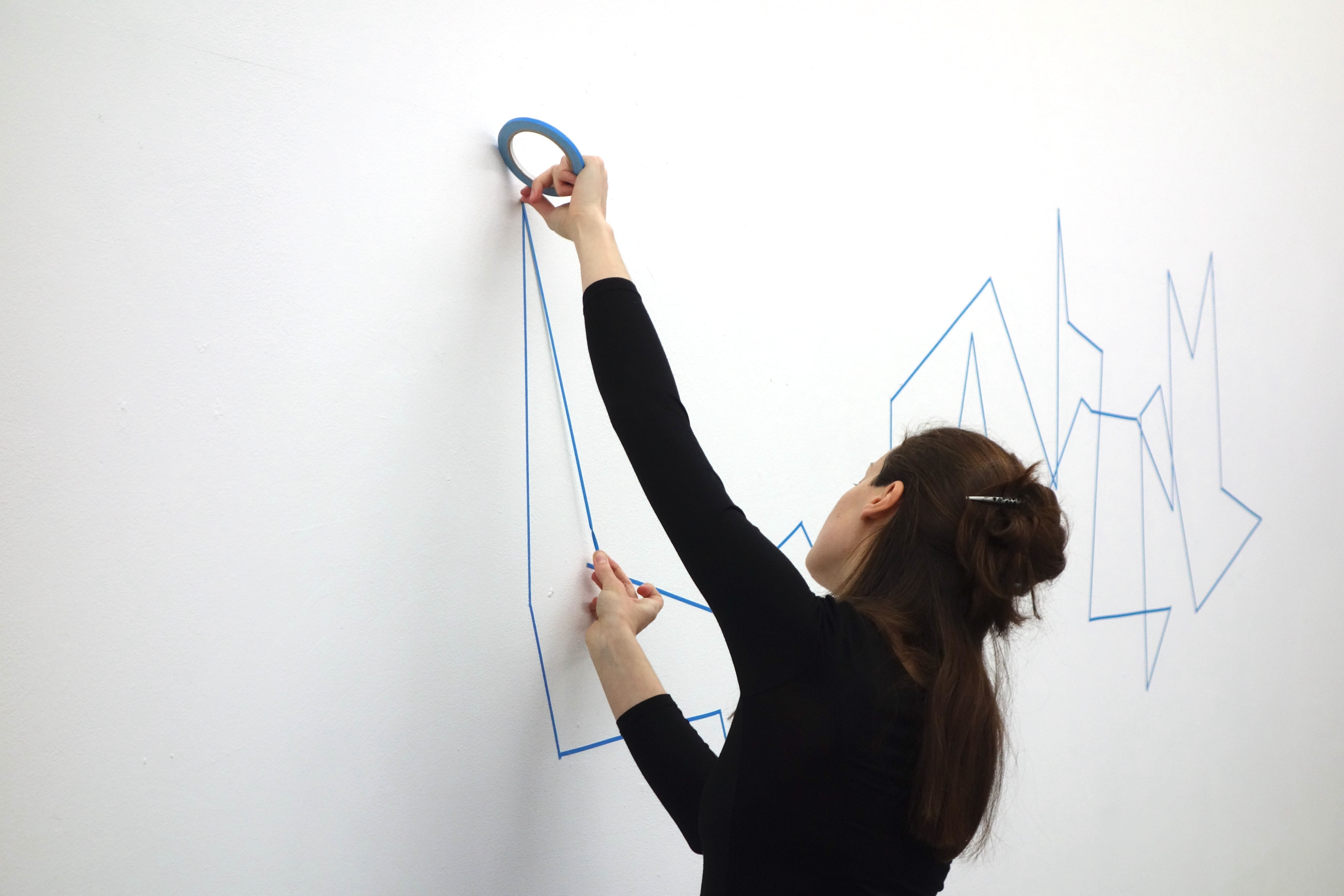 Live drawing, pencil and 0,5 cm tape – 20 min