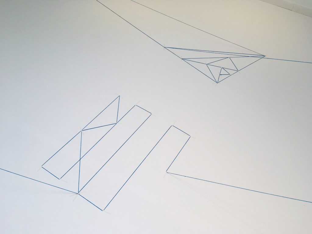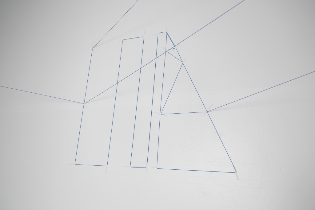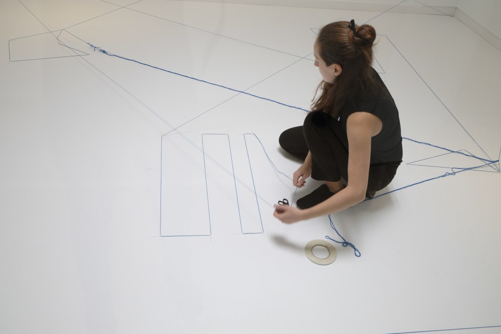 ‘Paysages filaires’ is a performance installation in which the artist proposes to draw in the white space of the gallery, creating a fragile graphic structure. She uses a minimalist, geometric language to create a wired landscape that echoes the transition from blank paper to white space, from two to three dimensions. It’s a poetic journey in which the viewer is invited to share.