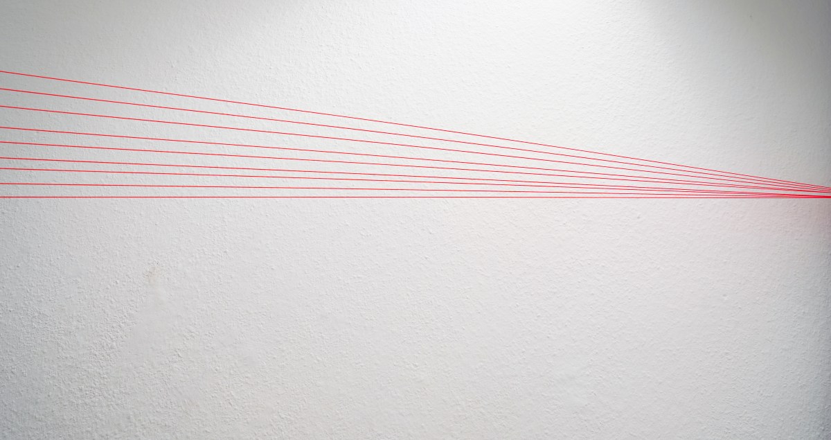 Cette installation fait référence au point de fuite, notion introduite par les peintres de la renaissance.