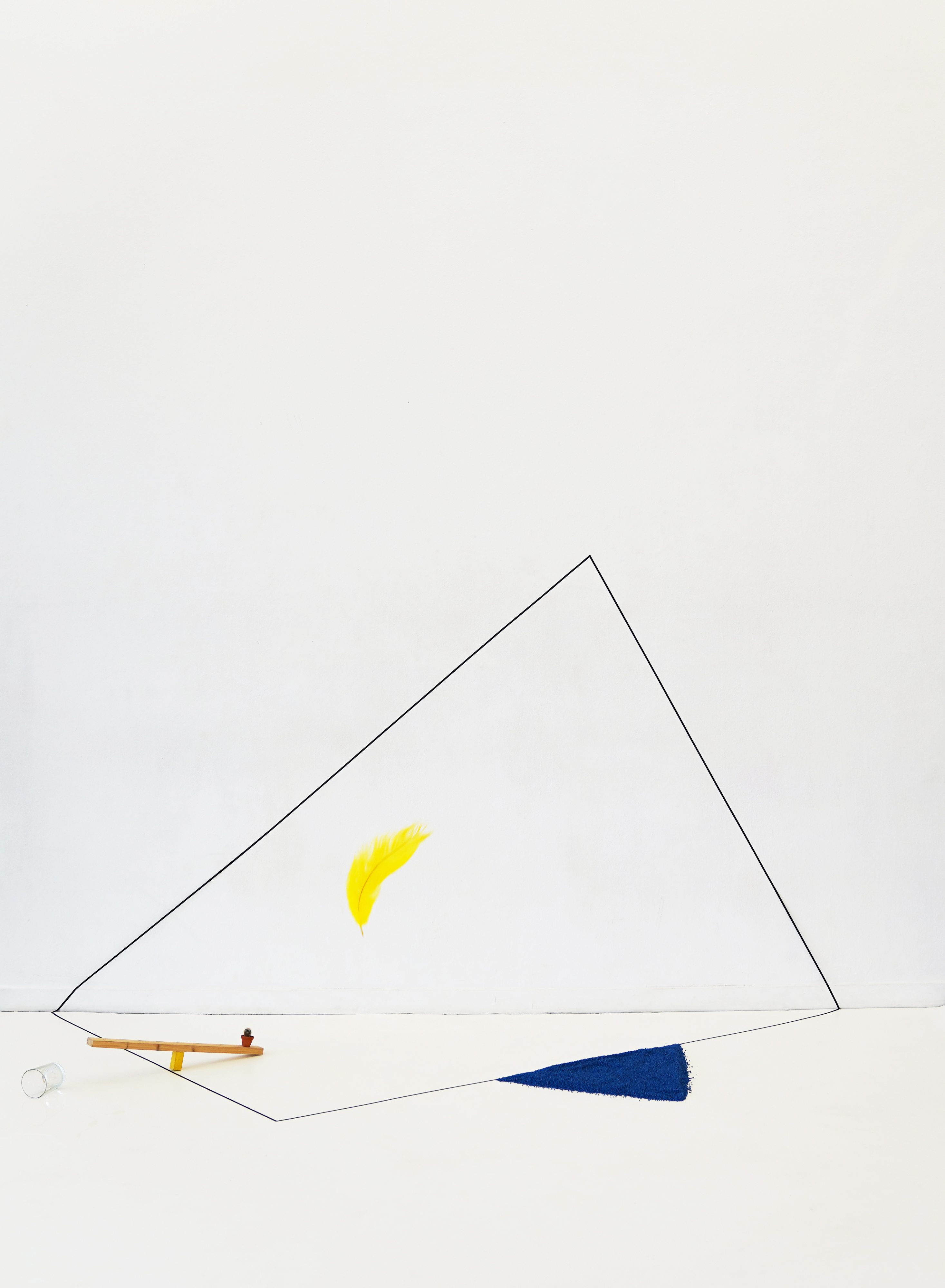 Staging based on a poem by Renaud Golo, which poses the concepts of unpredictability, limits and freedom in space. This staging finds its sources in Mannerist sculpture and the use of assembled objects for symbolic purposes. These two photographs pose the spectator before an enigma that is impossible to solve, if only with a sentence: