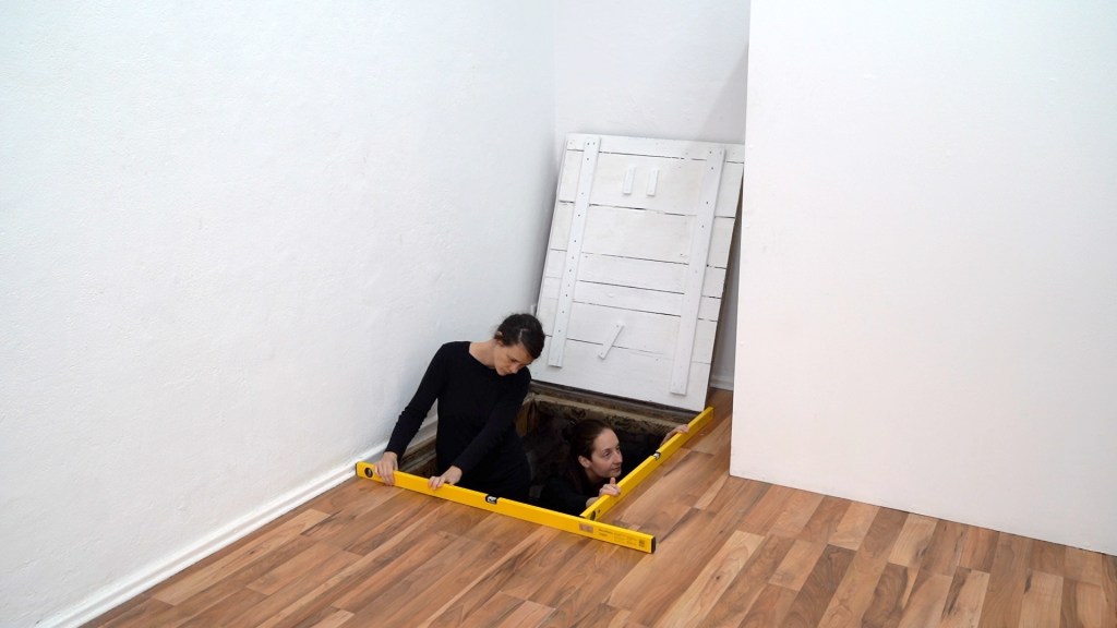 Elma Riza and Laure Catugier, like bad housekeepers, have embarked on a major spring cleaning of the Retramp gallery. They have chosen to use the gallery as a space for their experiments, where objects and actions are inextricably linked through the prism of sabotage. The two artists share a common approach to performance art, which aims at the misappropriation of manufactured objects, with a strong preference for the geometry of forms.