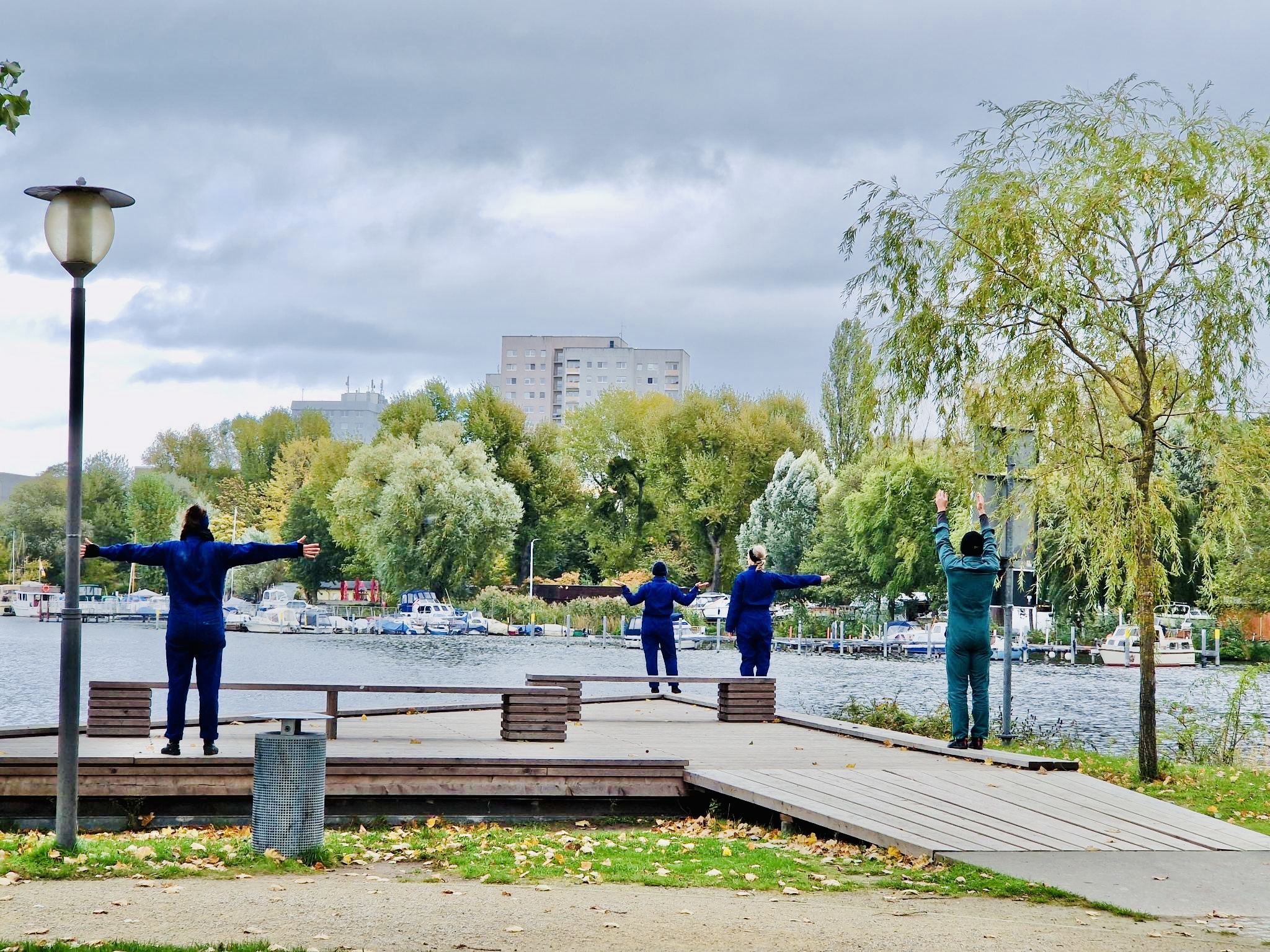 Spuren/Traces combines contemporary dance and Art du Déplacement (Parkour) with the art of walking. Visitors are invited to join performative forays through Sanssouci Palace Park and across Friendship Island. They can either watch the action or actively participate. A moving dialogue is created between the place and the bodies acting in it.